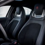 - Alfa Romeo Giulietta 110 Edizione 2021: Al tratarse de un auto de características deportivas, los asientos son de tipo cubo y otorgan muy buena sujeción, además de estar tapizados en piel con alcántara, las costuras en color rojo se vuelven a hacer presentes, así como el emblema de Alfa Romeo bordado en las cabeceras y la tipografía de la marca un poco más abajo grabada sobre una superficie en acabado metálico. Para México tiene un precio de $759,900 pesos