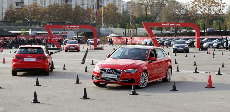 Durante el acto de entrega de los nuevos Audi, los jugadores del Barcelona, divididos en distintos grupos, participaron en el Audi ‘e-tron challenge’, un desafío compuesto por una serie de ejercicios destinados a la producción de energía eléctrica con tres estaciones de carga.