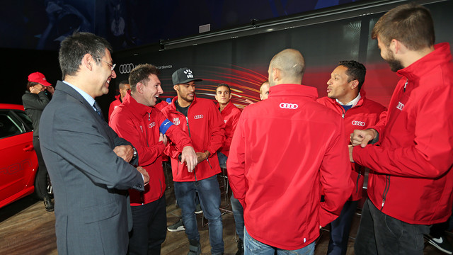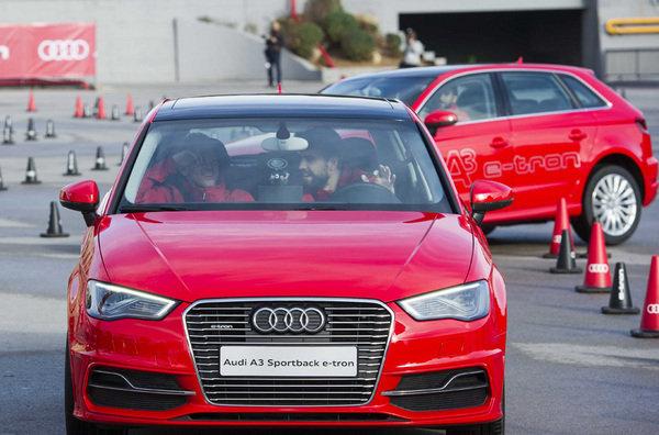 Después, los jugadores del Barcelona pasaron a la prueba de conducción del Audi A3 Sportback e-tron, con tecnología híbrida enchufable, en la que estuvieron acompañados del piloto de Audi y subcampeón de las 24 Horas de Le Mans, Marc Gené.
