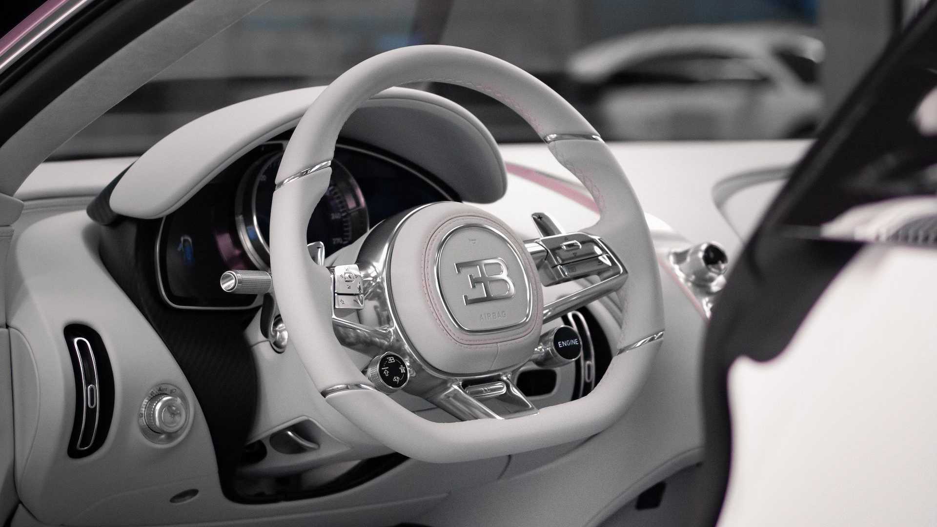 Como es costumbre, el trabajo de personalización no se limita al exterior del auto, por lo que el interior del Bugatti Chiron Alice también cuenta con toques hechos a medida para la afortunada receptora del regalo.