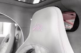 La cabina cuenta con piel y alcántara en color Gris Rafaele que forra vestiduras, tablero, volante, y varias partes más. Costuras y detalles pintados en rosa, crean el contraste perfectamente empalagoso como el día que celebra.