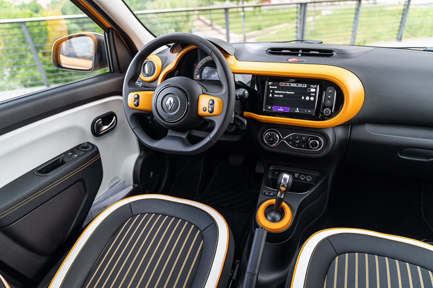 El interior es muy minimalista pero espacioso donde las formas redondeadas y suaves nos recuerdan un poco la simpatía del Twingo original. Se destaca una pantalla multimedia de 7″ para el sistema Easy Link, que permite sincronizar con la app MY Renault y con Smartphones, sean de Apple o con sistema Android.