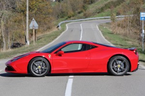 Ferrari 458 Speciale: Por otra parte, cuenta con un nuevo control de estabilidad, denominado Side Slip Angle Control (SSC), que mediante un sofisticado software analiza la aceleración lateral, el ángulo de los neumáticos, la posición del volante y la velocidad para permitir un cierto deslizamiento del eje trasero hasta ser controlado por el nuevo control de tracción procedente de la F1 y denominado F1 Trac traction control.