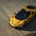 - Ferrari SF90 Spider por Novitec: Gracias a la ganancia de potencia, el Ferrari SF90 de Novitec acelera de 0 a 100 en 2,4 segundos (una décima más rápido que el modelo de serie), se lanza desde parado a la barrera de los 200 por hora en 6,5 segundos y tiene una punta de 340 kilómetros/hora (cifra idéntica al coche de producción normal). Esto lo consigue con un cambio automático de doble embrague y ocho velocidades y un sistema de tracción a las cuatro ruedas.