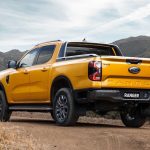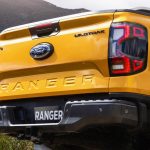 En la parte trasera lleva dos tipos de calaveras, tal como en el frente, unos más básicos y otros deportivos para la versión Wildtrak y Sport, con diseño 3D y fondo ahumado. El portón lleva estampada la palabra Ranger en la zona baja. Según versión encontraremos nuevos rines, revestimiento plástico, enchufe de carga, barras en el techo e iluminación perimetral.