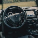 En su interior agrega apliques de color negro en los paneles de las puertas y la plancha frontal, tapizado de cuero ecológico con costuras rojas y el logo FX4 bordado en los apoyacabezas. Con estos detalles, la pick up gana una imagen más deportiva y aventurera, por supuesto un escalón por debajo de la Raptor.