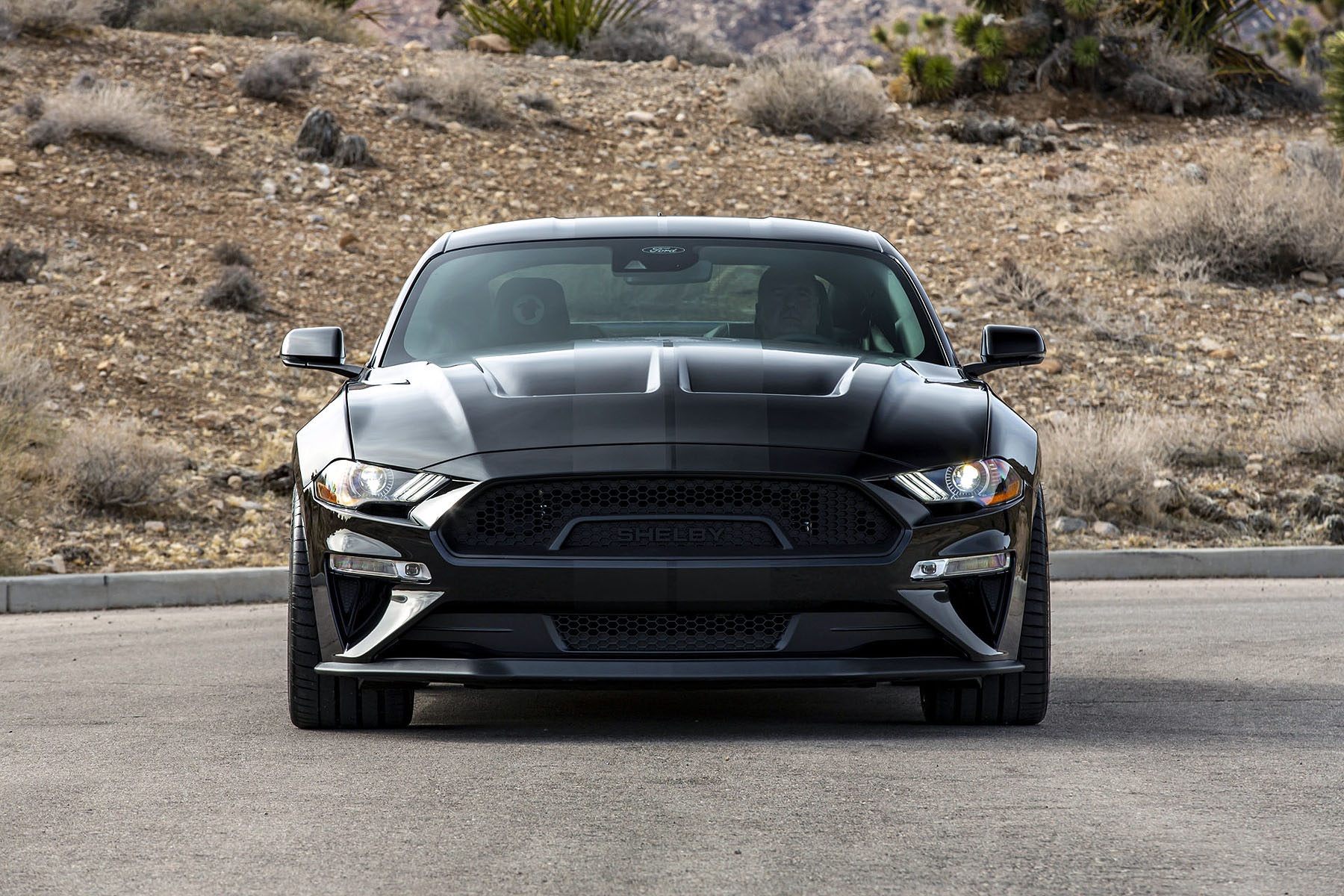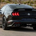 El Mustang Carroll Shelby Centennial Edition presenta una parrilla con la marca Shelby, pasos de rueda delanteros extendidos y un alerón trasero considerable. El modelo también luce un capó ventilado, rockers agresivos, gráficos especiales y llantas de aluminio forjado de 20 pulgadas con un acabado negro satinado. Exteriormente, es cuanto menos siniestro.