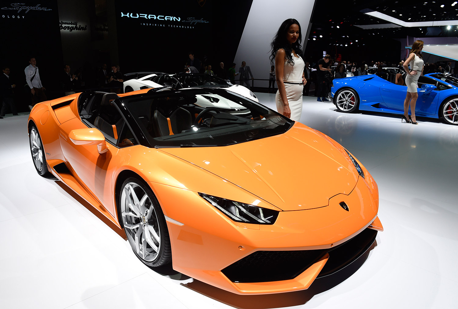 - A Lamborghini Huracan LP 610-4 Spyder is presented on the first press day of the Frankfurt Auto Show IAA in Frankfurt, Germany, Tuesday, Sept. 15, 2015. The car show runs through Sept. 27. (AP Photo/Jens Meyer)
