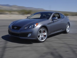 Hyundai Genesis Coupe 2011: Su motor más grande es un 3.8 lts V6 doble eje de levas por culata DOHC y 24 válvulas de 306CV a 6.300rpm y un torque de 361Nm a 4.700rpm. La transmisión estándar es manual de seis velocidades o automática secuencial, también de seis, las cuales envían la potencia hacia las ruedas posteriores (RWD), mediante un diferencial de deslizamiento limitado tipo Torsen. Según el fabricante coreano este carro con transmisión manual acelera desde 0 a 60millas (0 a 100 km/h) en menos de seis segundos y alcanza una velocidad máxima limitada a 150mph (240 km/h). Su consumo es de 17mpg (27.4kmpg) en ciudad y 27mpg (43.5kmpg) en carretera