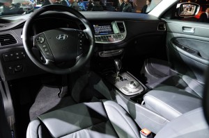 Hyundai Genesis Sedán 2012: Entre su equipamiento de serie incluye climatizador dual, alza vidrios eléctricos, cierre central de puertas, dirección asistida, sistema de audio con siete altavoces, asientos calefaccionados, doble airbag frontal, lateral y cortina, frenos antibloqueo (ABS), distribución electrónica de frenada (EBD), tapiz de cuero, techo corredizo eléctrico, control de velocidad crucero, control de estabilidad (ESP), control de tracción (TCS) y luces de xenón entre otros.