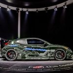 Estéticamente comienza con pasos de ruedas anchos, un lip delantero, faldones laterales, y un difusor trasero acompañado de un enorme alerón. Además, su carrocería lleva una decoración inspirada en circuitos tecnológicos.