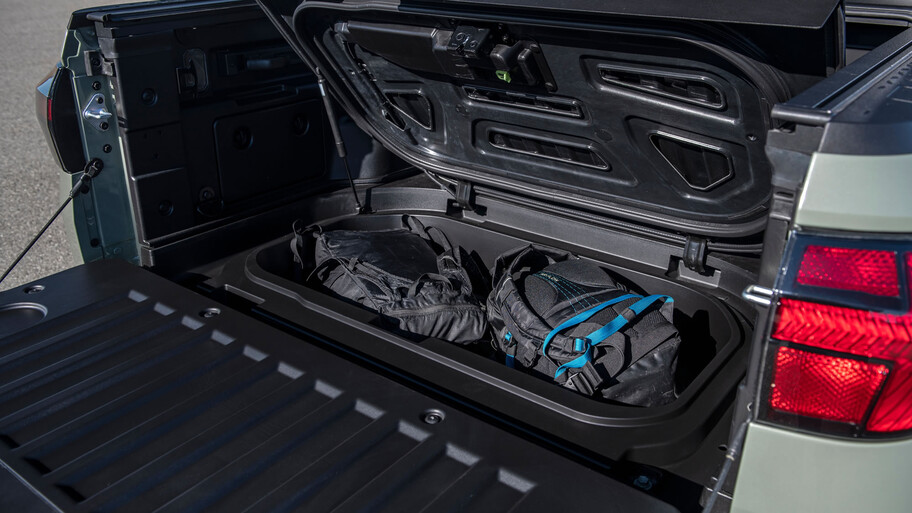 - Hyundai Santa Cruz 2022: La batea cuenta con soluciones interesantes como conector de corriente, un área de carga con tapa que cuenta con drenaje, pues para llenarla de hielo y bebidas, así como una tapa corrediza opcional.
