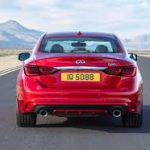 En la parte posterior hay cambios en la zona baja del parachoques, el que aparte de un par de cortes nuevos, incorpora un difusor (a color en los modelos V6 y Hybrid) y nuevos ópticos traseros con tecnología LED que tratan de imitar un poco las gráficas que llevan los modelos Q60 y QX30.