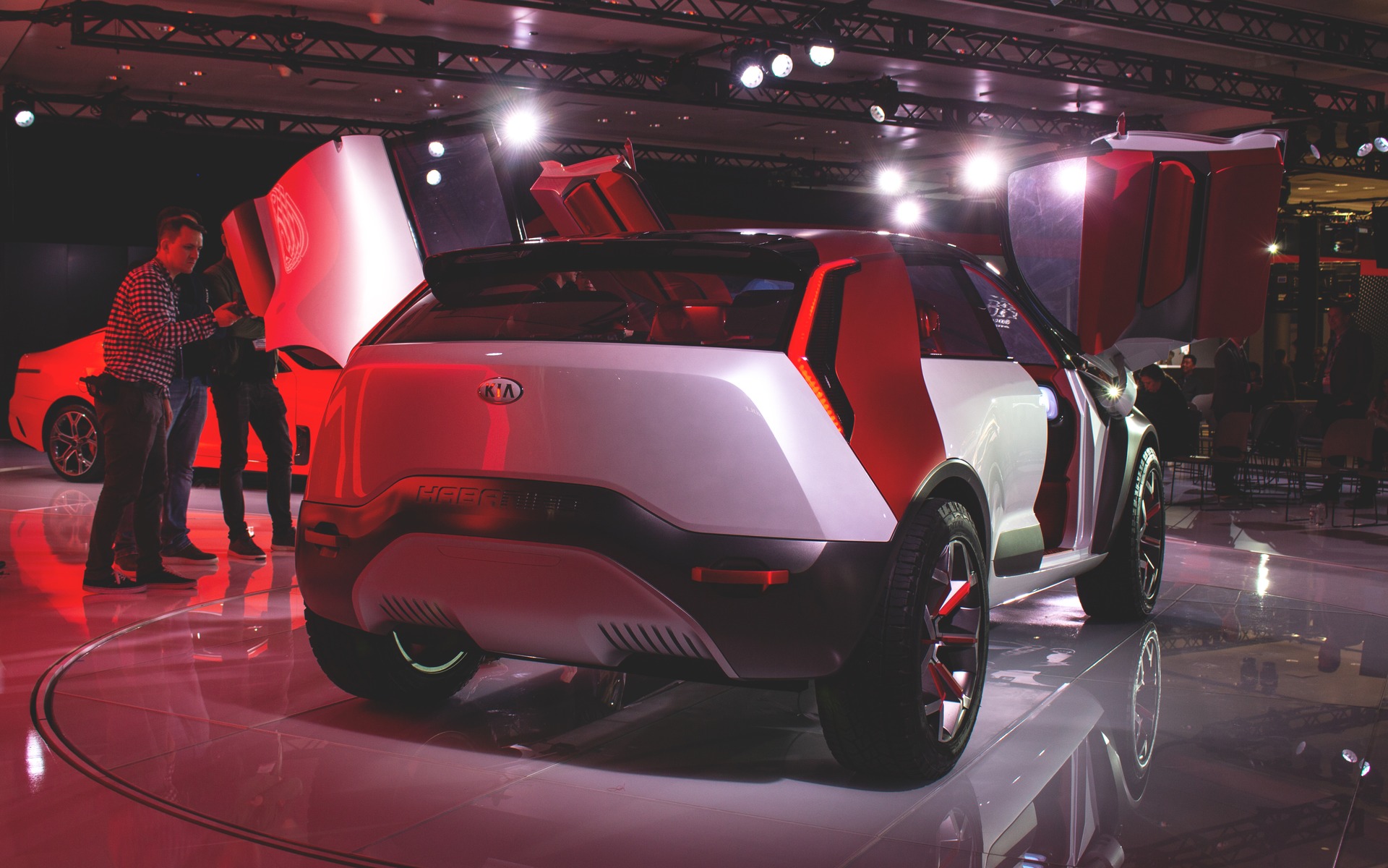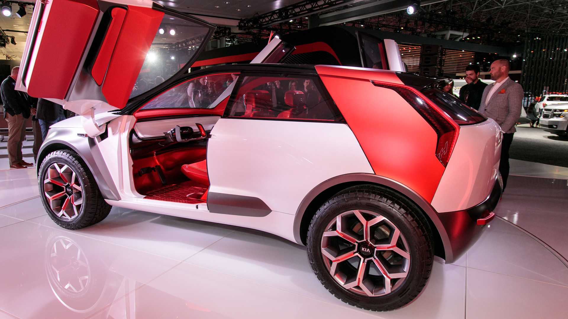 - Kia HabaNiro Concept: Lo que más llama la atención de este Kia HabaNiro son los trazos perfilados de la carrocería que fusiona un SUV con un hatchback, las puertas de accionamiento de mariposa, los rines de 20 pulgadas, los voladizos cortos, las superficies acristaladas y la combinación de tonos y materiales.