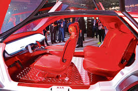 - Kia HabaNiro Concept: En su interior combina perfectamente la modernidad con el espacio. Destacan los asientos flotantes tapizados en tela y la ausencia de pantallas rectangulares y botones tradicionales. En su lugar equipa un sistema Head-Up Display (HUD) a lo largo y ancho del parabrisas controlado por un panel de instrumentos de acrílico cóncavo que es una gran pantalla táctil interactiva con sensor de luz sensorial. También hace gala de un sistema de ventilación perimetral que trabaja de manera silenciosa y uniforme, la iluminación que cambia de tono y de intensidad.