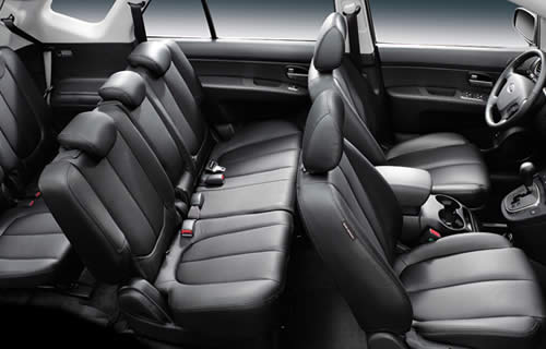 El carro Kia Rondo, que tiene como principal rival al Citroën C4 Picasso, tiene un equipamiento estándar que incluye aire acondicionado, alza vidrios eléctricos, cierre central de puertas, dirección asistida, radio CD/MP3, espejos exteriores eléctricos, computador de a bordo, airbags frontales y frenos antibloqueo (ABS).