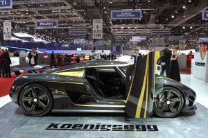 Koenigsegg Agera S Hundra: Con motivo de su unidad fabricada número 100, Koenigsegg ha creado este automóvil único basado en el Agera S, que emplea oro de 24 quilates y fibra de carbono en abundancia, incluyendo la carrocería, las llantas y algunos componentes mecánicos como la salida de escape y la suspensión.