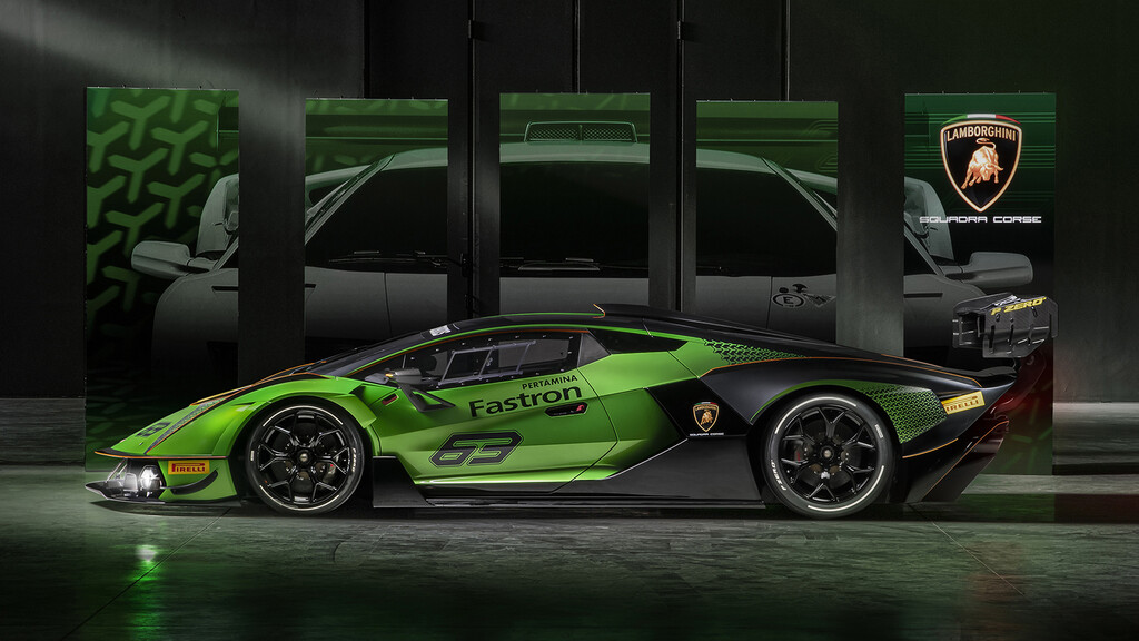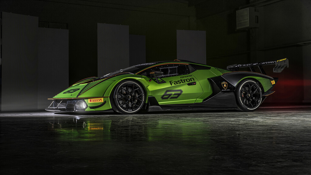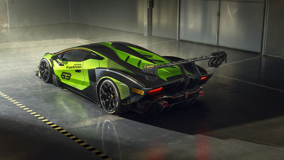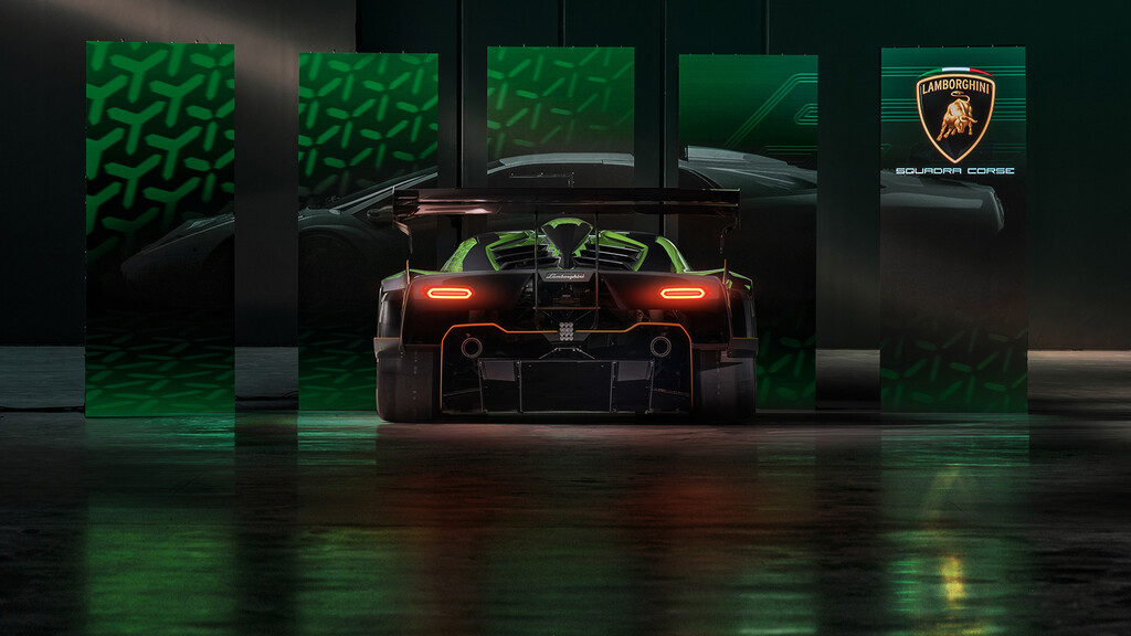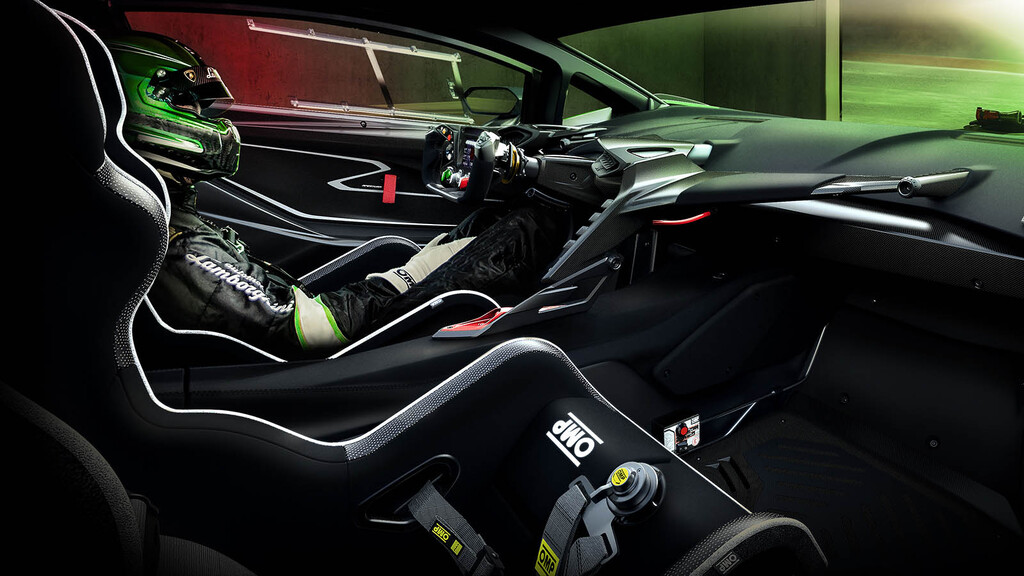 La aerodinámica ha sido trabajada por Lamborghini Squadra Corse en las competiciones de GT y garantiza un nivel de eficiencia y carga aerodinámica superior a los de un GT3, con un valor de 1,200 kg a 250 km/h. Es casi 400 kilos más de lo que podría lograr un McLaren Senna.