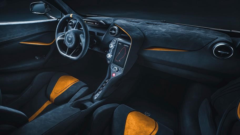 En su interior cuenta con asientos de cubo de fibra de carbono, así como recubrimientos de alcántara, volante específico, así como tapetes con los mencionados logotipos alusivos.  McLaren también dice que el VIN de cada automóvil comenzará con el número “298” como un guiño al número de vueltas completadas por el F1 GTR.