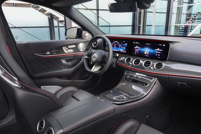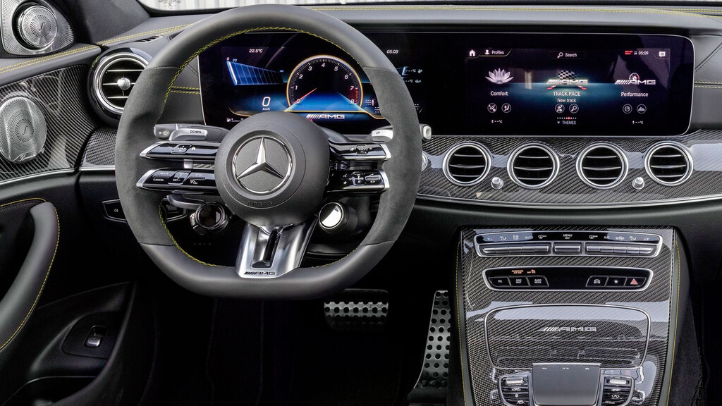 Aunque el interior mantiene prácticamente el mismo diseño, los actualizados AMG E63 estrenan un elemento que ya debutó hace unos meses en el Clase E estándar, es decir, un volante que incluye botones táctiles con retroalimentación háptica (volante Capacitivo). Además, el sistema de infoentretenimiento MBUX se ha actualizado a su última versión que cuenta con dos pantallas de 10.25 pulgadas (12.25 pulgadas en la versión S), una para el cuadro de instrumentos y la otra para el sistema de infoentretenimiento.