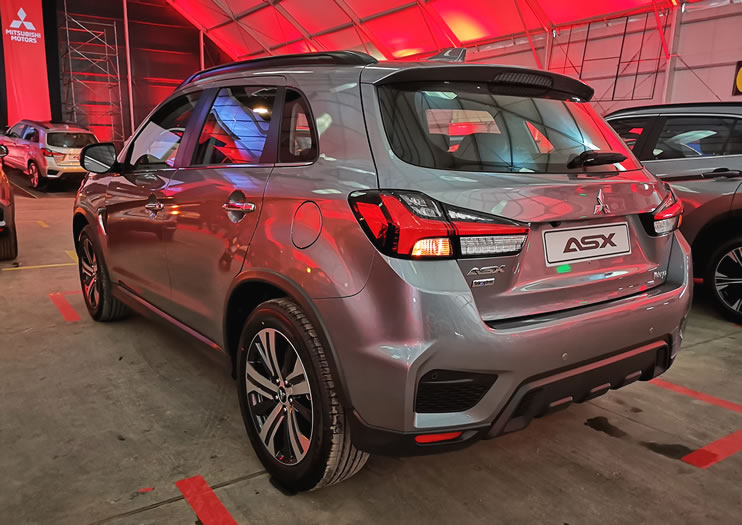 En la parte lateral, similar a la versión anterior, tiene detalles en moldura en cromo y negro, manijas de puertas cromadas, los espejos retrovisores plegables con luz intermitente-direccional y los aros que protegen los guardabarros. Las llantas traen rines en aleación de 18″, molduras de salidas de aire en las esquinas y la nueva firma trasera LED, inspirada en el Mitsubishi e-Evolution Concept 2017.