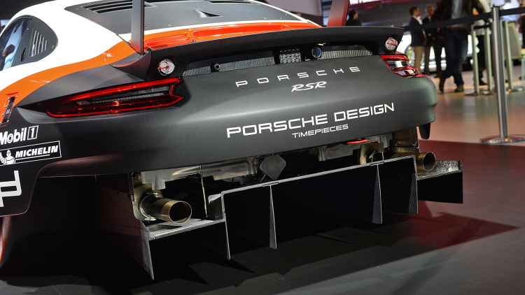 Otro detalle que hacen especial al Porsche 911 RSR es que no tiene el motor descolgado por detrás del eje trasero. Este Porsche rompe la herencia del 911. Se trata de un motor bóxer montado en posición central de seis cilindros de 4.0 litros refrigerado por agua con una potencia de 510 CV y acoplado a una caja secuencial de seis relaciones, un chasis de aluminio, una dirección electrohidráulica y dos circuitos de freno independientes para el eje delantero y trasero.
