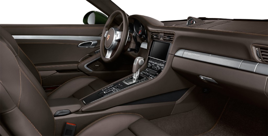 El interior, como no podía ser de otra forma, es de color marrón a juego con el verde oscuro de la carrocería y ha sido confeccionado por Porsche Exclusive. En el salpicadero forrado de cuero encontramos la esfera del Paquete Sport Chrono que es de serie.