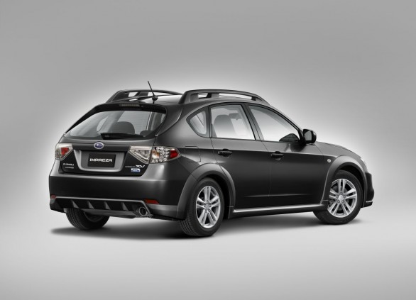 Subaru Impreza XV 2011: Su exterior incorpora molduras negras en los pasos rueda, barras en el techo, alerón trasero y una parrilla en la que destacan las barras horizontales sobre las verticales.