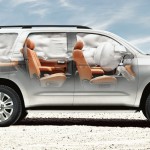 El carro Toyota Sequoia está disponible en versiones SR5, Limited y el tope de la gama la Platinum y además cuenta con un excelente equipamiento de serie: faros de halógeno, faros de niebla, retrovisores eléctricos con control remoto, vidrio con alta absorción de la energía solar, portaequipaje de techo, techo eléctrico corredizo, alerón trasero (con luz de frenado), control automático de la temperatura de 3 zonas, radio con Cd y Mp3 (con control desde el volante), volante ajustable en altura, sistema de entrada sin llave a control remoto, control automático de velocidad y mucho mas.
