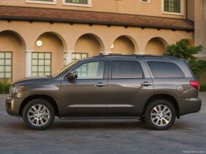 Toyota Sequoia 2011: Mide 5210mm de largo, 2030 de ancho sin espejos, 1955mm de alto, tiene una distancia entre ejes de 3100mm, tiene una altura del piso de 252mm, una capacidad de carga de 612kgs, tiene un peso de 2598kgs y su tanque de combustible tiene una capacidad de 100litros.