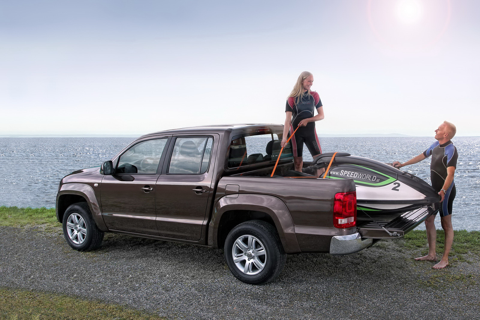 El Volkswagen Amarok es una es una camioneta pickup perfecta para el placer ó el trabajo que presenta un robusto diseño y un atractivo conjunto. Este carro mide 5254mm de largo, 1944mm de ancho sin espejos, 1834mm de alto y tiene una distancia entre ejes de 3095mm. Su tanque de combustible tiene una capacidad de 80 litros. Su capacidad de carga es de 1137kgs. Sus llantas son P245/70R16. Recordemos que la Amarok no se comercializa en EEUU debido al dominio total que tiene la Ford F-150.