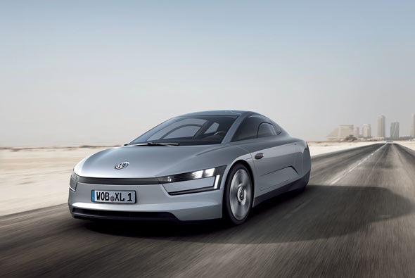 Volkswagen XL1 Concept: Mide 3,88 metros de longitud, 1,66 de ancho y apenas 1,15 de alto, cuenta con un diseño compacto y alargado, con dos puertas laterales, que se abren hacia arriba, capacidad para dos personas y una futurista vista posterior en la que se refuerza un estupendo coeficiente aerodinámico